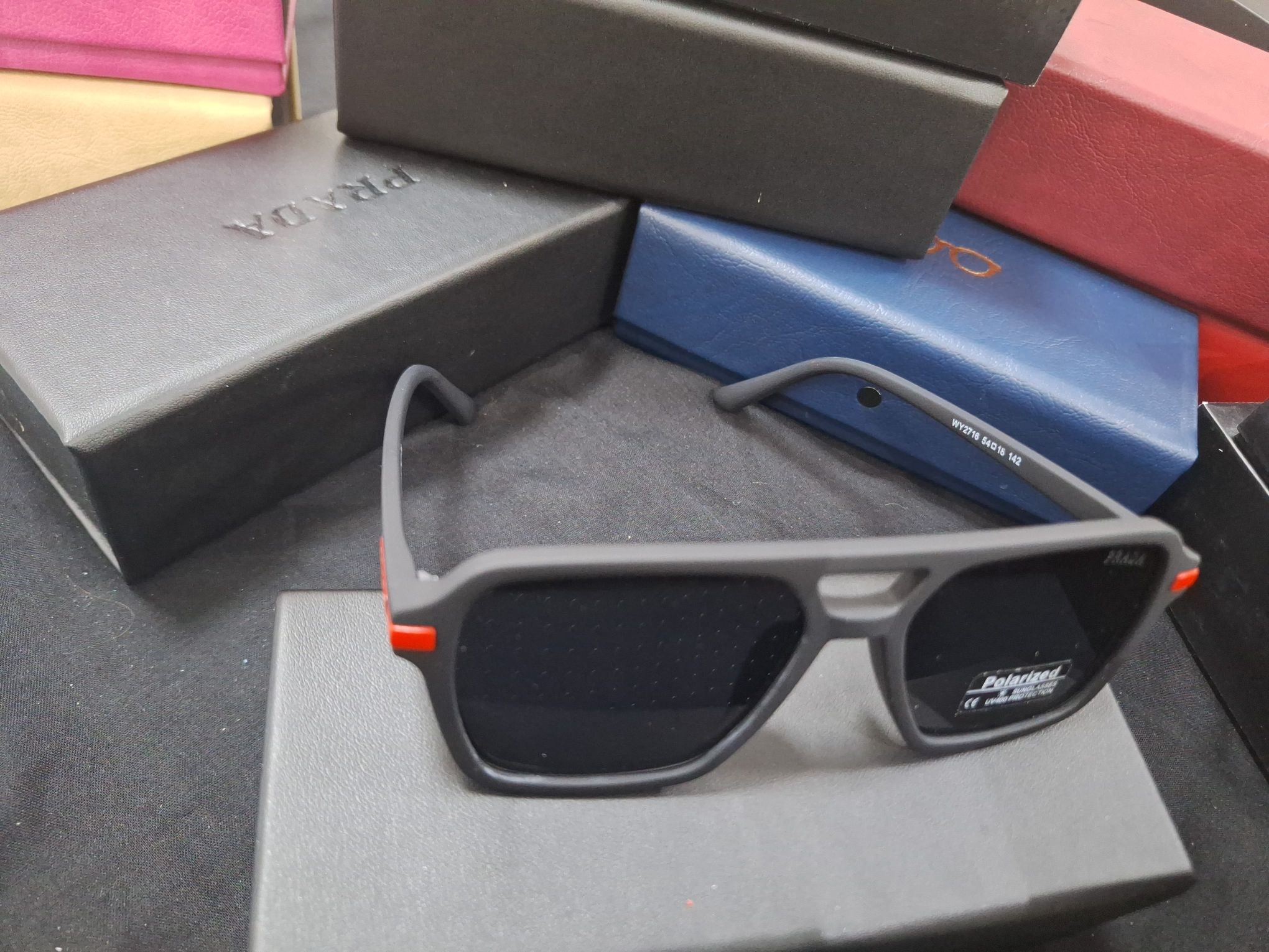 عینک آفتابی پرادا فوق العاده شیک مشکی خاص پلاریزه استانداردuv400 مردانه مناسب همه صورتها شیک و بی نظیر